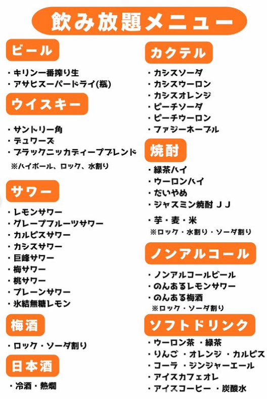 飲み放題ご利用のお客様への注意書きも写真にありますのでお読みください😊